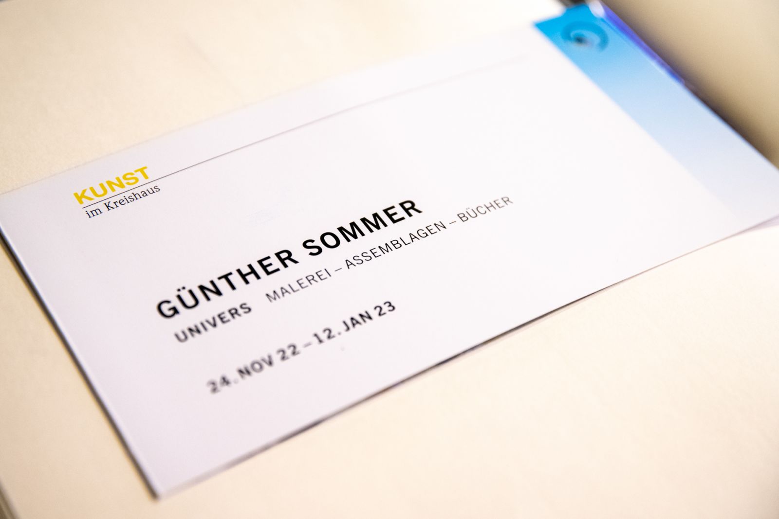 In Günther Sommers Arbeiten wird dominant eine starke Beziehung zu Theater, Literatur und Musik sichtbar: Sommers Bild-Inszenierungen schaffen imaginäre Räume in Bildern, aber auch in dreidimensionalen Buchobjekten und in Partituren, in denen häufig Portraits von Musikern zentrale Bildmotive sind. Diese Partituren und Objekte orientieren sich an den rhythmisch-dynamischen Aspekten der Musik dieser Protagonisten. Außerdem interpretiert und glossiert Sommers Bildsprache die Sinngehalte von Liedtexten und transferiert deren Inhalte in eine andere künstlerische Realität: Metamorphosen finden statt, ständiger Wandel- auch die Deutung- ist möglich.